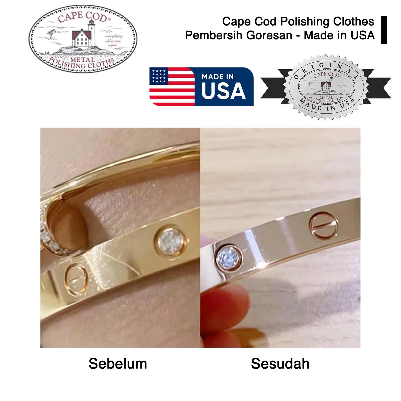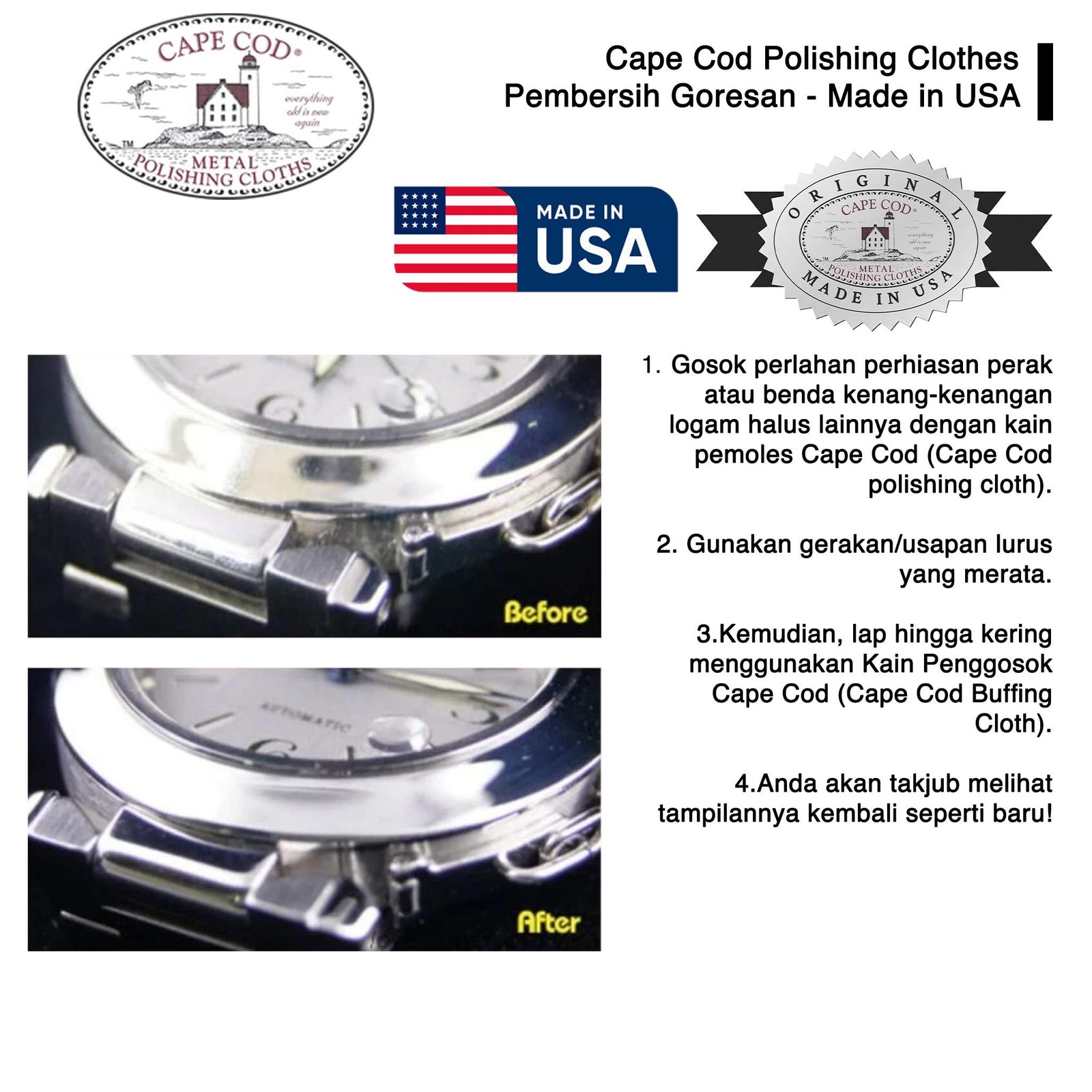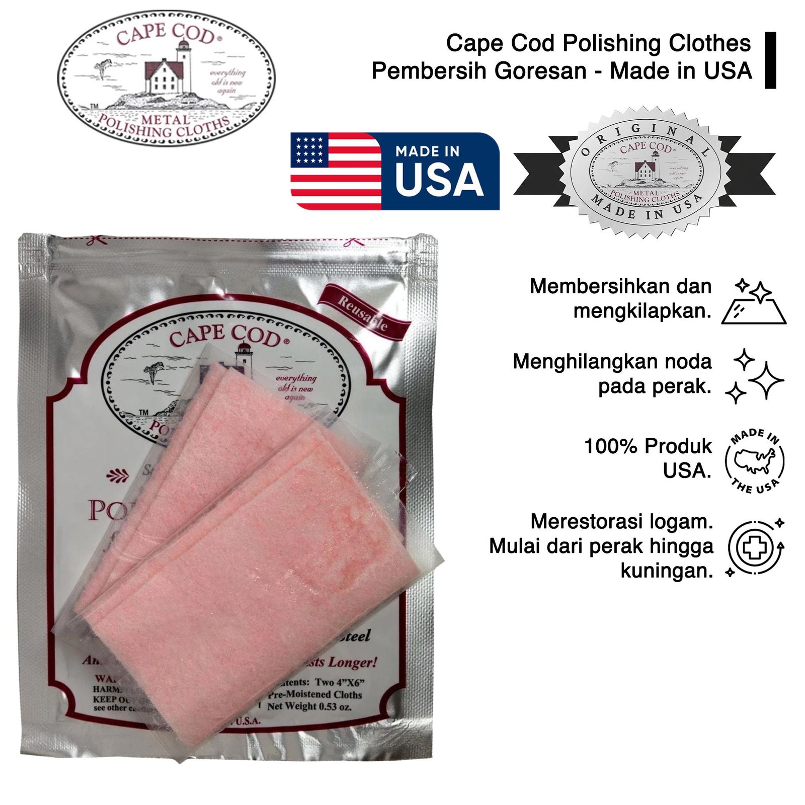 Cape Cod Metal Polishing Cloths adalah kain lembab, dapat digunakan kembali untuk membersihkan, memoles, dan melindungi semua jenis logam: Perak, kuningan, timah, emas, baja tahan karat, tembaga, aluminium, dan nikel.