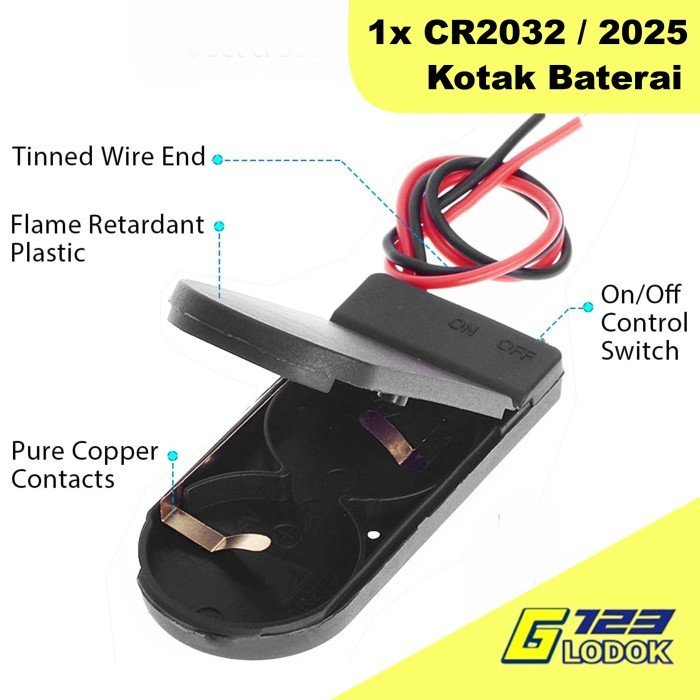 CR2032 CR2025 Battery Holder Case Kotak Tempat Baterai Batre Kancing Coin Koin 1x 2x 1 2 Slot 3V 6V On Off Switch Saklar Kabel