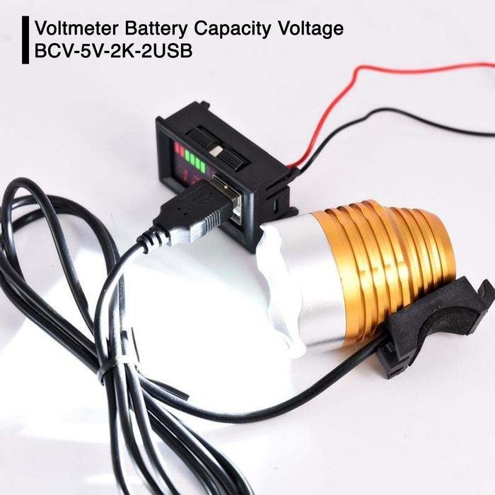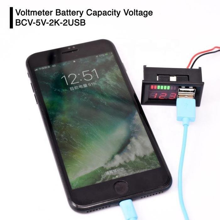 Display Volt Meter Battery Accu Level Indicator LED Dual USB Charger 5V 2A Indikator Level Kapasitas Baterai Aki DC Pengukur Tegangan Baterai Mobil Motor Panel DIY Modul Power Bank Portabl