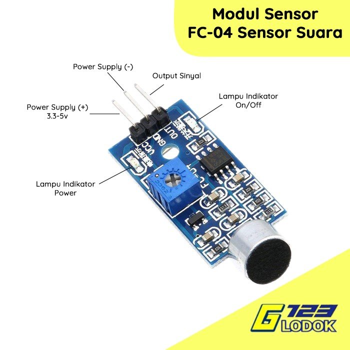 UNTUK KEAMANAN PRODUK ANDA SILAHKAN TAMBAHKAN PENGAMAN BUBBLE WRAP : AGAR BUBBLE WRAP INI DAPAT MENGURANGI RESIKO BARANG CACAT/RUSAK/PECAH SELAMA DI PERJALANAN KURIR EKSPEDISI PENGIRIMAN. BILA PEMBELI TIDAK MENAMBAHKAN BUBBLE WRAP INI, PENJUAL TIDAK BERTANGGUNG JAWAB ATAS KERUSAKAN BARANG YANG TERJADI AKIBAT KURIR PENGIRIMAN. Modul Sensor Suara FC-04 – Dengar Dunia Sekitarmu! Mau bikin robot yang bisa ngobrol? Atau alarm yang baru bunyi kalau ada suara mencurigakan? Modul sensor suara FC-04 ini jawabannya! Dengan sensitivitas tinggi, modul ini bisa mendeteksi suara dengan sangat akurat. Cocok untuk berbagai proyek, dari yang sederhana sampai yang kompleks. Kecil, simpel, dan mudah digunakan, bahkan untuk pemula sekalipun! Jangan sampai kehabisan, beli sekarang dan mulai proyek elektronikmu! #sensorsuara #fc04 #elektronika #iot #diy Spesifikasi Modul Sensor Suara FC-04 Sensitivitas: Mampu mendeteksi suara dengan tingkat sensitivitas yang cukup tinggi. Tegangan Kerja: Biasanya menggunakan tegangan 5V DC. Output: Sinyal digital (tinggi atau rendah) yang menunjukkan apakah suara terdeteksi atau tidak. Dimensi: Ukuran modul cukup kecil dan kompak, sehingga mudah untuk dipasang pada berbagai proyek. Penggunaan Modul Sensor Suara FC-04 Modul sensor suara FC-04 memiliki banyak aplikasi dalam berbagai proyek elektronika, seperti: Alarm: Menyalakan alarm ketika mendeteksi suara yang tidak diinginkan. Otomatisasi Rumah: Mengaktifkan lampu atau perangkat lainnya ketika mendeteksi suara tepuk tangan atau suara perintah suara. Robot: Memungkinkan robot untuk merespons suara perintah. Proyek Edukasi: Digunakan untuk mengajarkan dasar-dasar elektronika dan pemrograman. Fungsi Modul Sensor Suara FC-04 Modul sensor suara FC-04 memiliki fungsi utama untuk mendeteksi keberadaan suara atau getaran di lingkungan sekitar. Ketika ada suara yang masuk ke mikrofon, sinyal listrik yang dihasilkan akan diperkuat oleh IC penguat. Jika sinyal yang diperkuat melebihi nilai ambang batas yang telah ditentukan, komparator akan menghasilkan output tinggi dan LED indikator akan menyala.