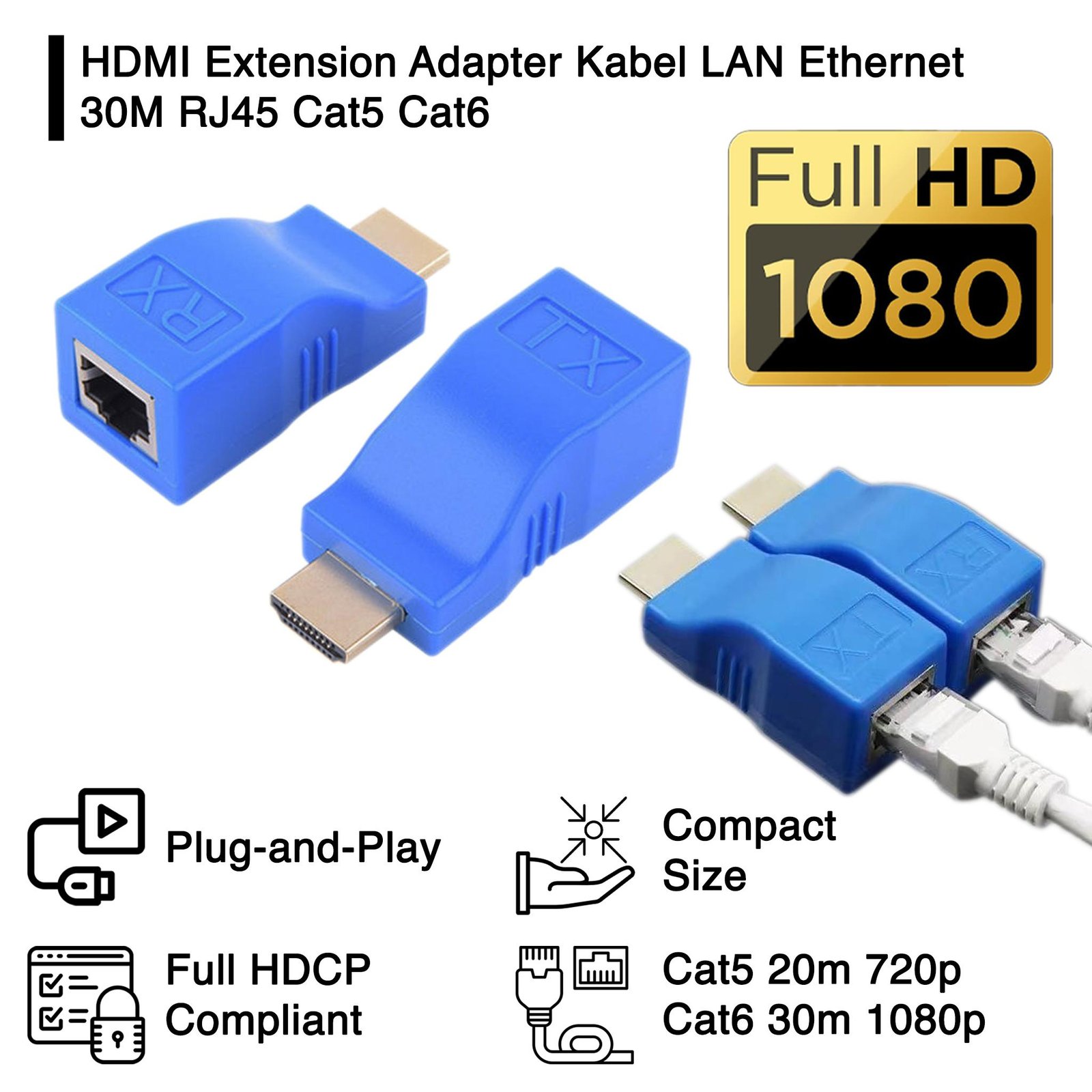 HDMI Extender Extension Adapter Kabel LAN Ethernet 30M RJ45 Cat5 Cat6