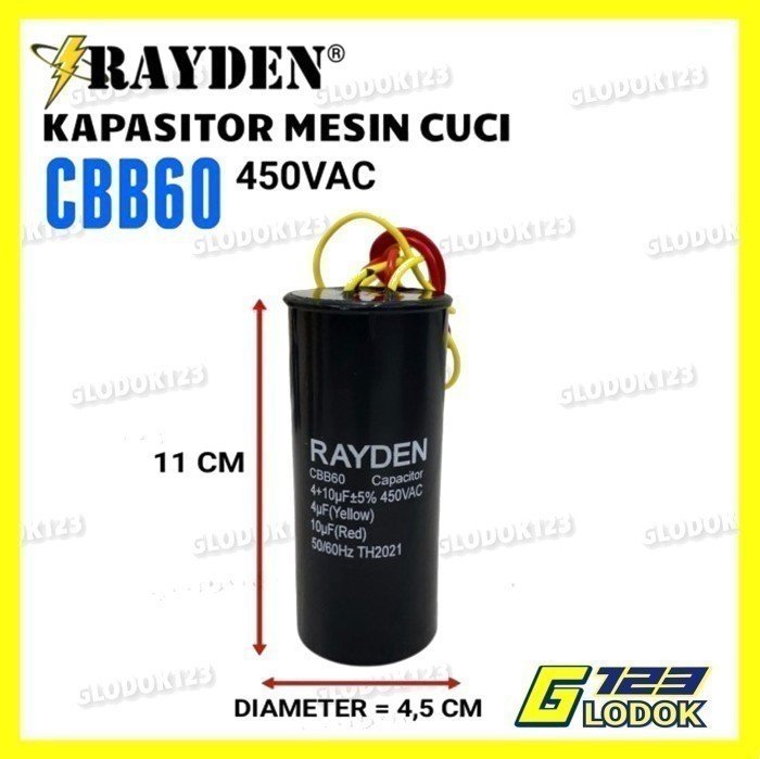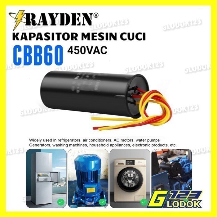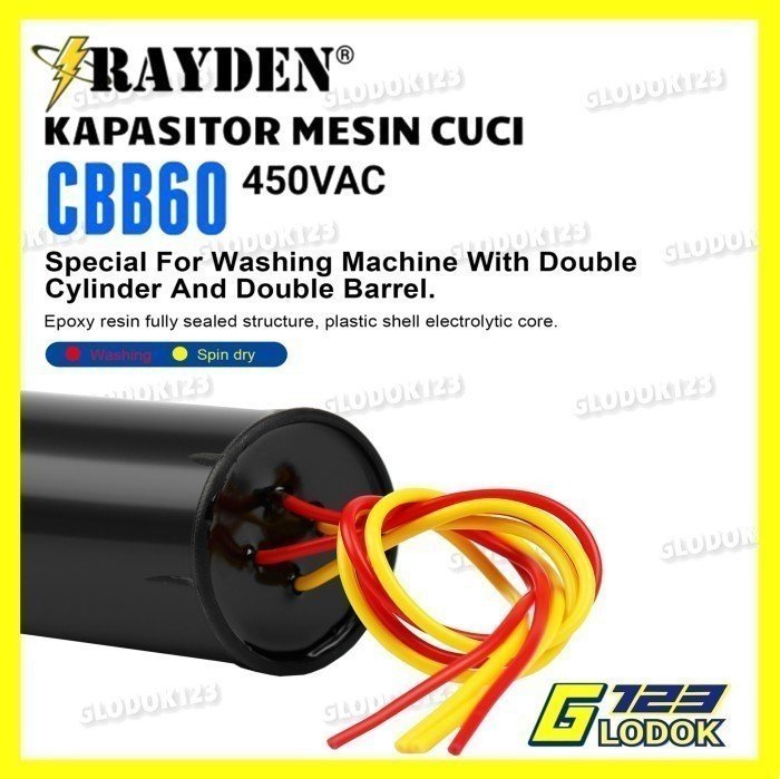 Kapasitor Mesin Cuci 2 Tabung atau kapasitor start yang berfungsi untuk menambah tenaga pada saat dinamo mesin cuci berputar. * Fitur : – Resistansi isolasi yang tinggi. – Stabilitas kapasitansi yang baik. – Tingkat Keamanan dan keandalan yang tinggi karena lapisan luar terbuat dari resin plastik tahan api dan bagian dalam casing logam tahan api. – Berlaku untuk memulai dan menjalankan motor satu arah AC dengan frekuensi 50 ~ 60Hz. – Start Kapasitor * Spesifikasi : – Rentang Kapasitansi 3+11μF, 4+10μF, 5+10μF, 5+12μF, 6+10μF, 4+12μF, 6+12μF – Toleransi Kapasitansi ± 5%, ± 10% – Tegangan 450VAC – Double Kapasitor dengan 4 Kabel