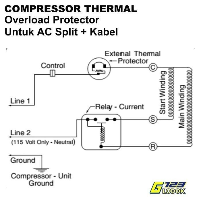 OverLoad Kompresor AC Split + kabel UNTUK 1/2PK,3/4PK,1PK,11/2PK, 2PK