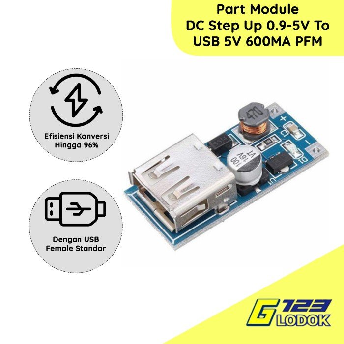 PENTING! VIDEO UNBOXING Untuk memastikan pengalaman belanja yang nyaman, harap lakukan video unboxing tanpa terputus saat membuka paket yang Anda terima. Video ini akan sangat membantu jika terdapat keluhan atau masalah pada produk, sehingga komplain dapat dianalisis dan diselesaikan dengan cepat. Komplain hanya akan diproses jika syarat video unboxing terpenuhi. Terima kasih atas pengertiannya! Untuk keamanan produk anda, silahkan tambahkan pengaman bubble wrap: Agar bubble wrap ini dapat mengurangi resiko barang cacat/rusak/pecah selama di perjalanan kurir expedisi pengiriman. Bila pembeli tidak menambahkan bubble wrap ini, penjual tidak bertanggung jawab atas kerusakan barang yang terjadi akibat kurir pengiriman. Modul pengisi daya USB 5V adalah sebuah perangkat elektronik kecil yang dirancang untuk mengubah tegangan DC (Direct Current) dari sumber daya yang lebih tinggi menjadi tegangan 5V DC, yang merupakan standar untuk pengisian perangkat USB seperti ponsel, tablet, power bank, dan perangkat elektronik portabel lainnya. Modul ini biasanya dilengkapi dengan port USB untuk menghubungkan perangkat yang ingin diisi daya. Fungsi Utama: Mengubah Tegangan: Modul ini berfungsi sebagai regulator tegangan, mengubah tegangan input yang lebih tinggi menjadi tegangan output yang stabil sebesar 5V. Memberikan Daya: Modul ini menyediakan daya listrik yang diperlukan untuk mengisi daya perangkat USB. Proteksi: Modul ini biasanya dilengkapi dengan fitur proteksi seperti perlindungan terhadap arus pendek, tegangan berlebih, dan panas berlebih untuk menjaga keamanan perangkat yang terhubung. Komponen Utama: IC Regulator: PFM Chip Control Dioda: Melindungi modul dari tegangan balik. Kapasitor: Menstabilkan tegangan output dan menyaring noise. Induktor: Membantu mengatur arus output. Port USB: Tempat untuk menghubungkan perangkat yang ingin diisi daya. Spesifikasi Teknis: Tegangan Input (Vin): Range: 0.9-5V Tipe: DC (Direct Current) Tegangan Output (Vout): Tetap: 5V DC Arus Output (Iout): Range: 500mA hingga 2A. Efisiensi: Range: Biasanya 80% hingga 90%, tergantung beban dan kondisi operasi. Riak Tegangan: Range: Sangat kecil, dalam satuan mV. Regulasi Tegangan: Range: Sangat baik, artinya tegangan output sangat stabil meskipun beban berubah. Proteksi: Overcurrent: Melindungi modul dari kerusakan akibat arus yang terlalu besar. Overvoltage: Melindungi modul dari kerusakan akibat tegangan input yang terlalu tinggi. Short Circuit: Melindungi modul dari kerusakan akibat hubungan singkat. Temperatur Operasi: Range: Biasanya -20°C hingga +85°C.