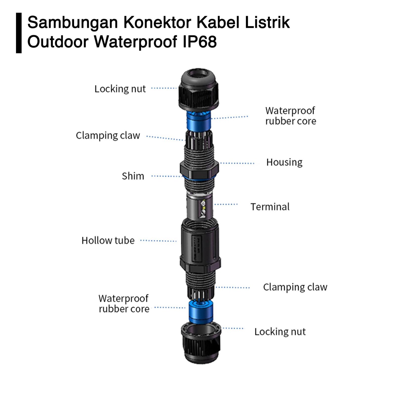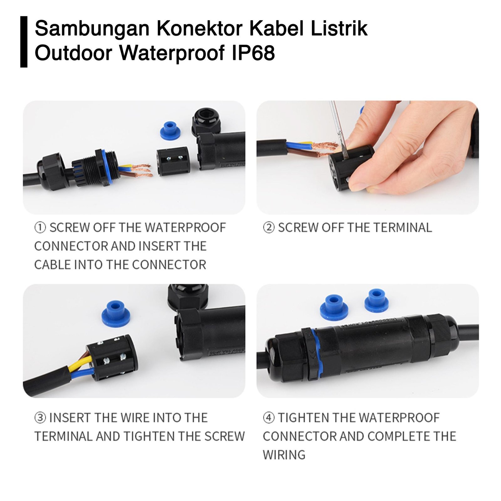 Sambungan Konektor Kabel Listrik Tahan Air Outdoor Waterproof IP68