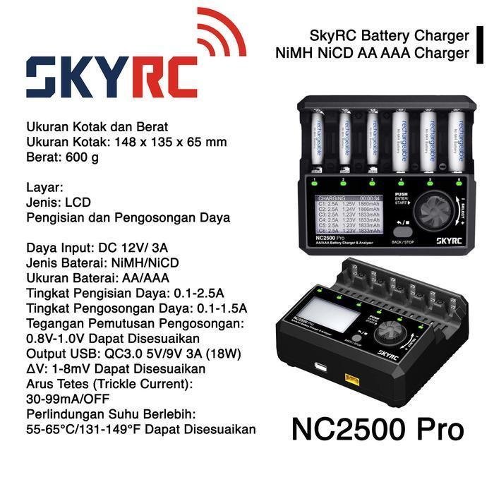 SkyRC Battery Charger Analyzer AA AAA A2 A3 NiMh NiCD NC 1600 2200 2500 3000 PRO 4 6 Slot Pengisian Cepat Baterai Cas Isi Ulang ORIGINAL