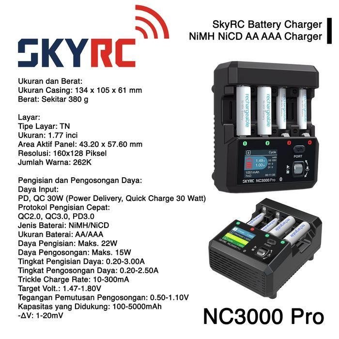 NC3000 Pro mewakili puncak inovasi pengisian baterai SKYRC. Dengan layar TN 1.77 inci yang detail dan dukungan protokol pengisian cepat PD/QC 30W, ini adalah charger terbaik untuk pengguna yang menuntut performa dan fitur paling lengkap.