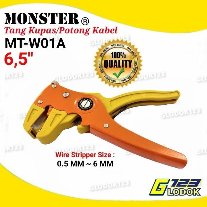 MONSTER – MT-W01A Tang Kupas / Potong Kabel – Kualitas Ketajaman Terjamin – 2 in 1 (Bisa Kupas dan Potong Kabel) – Kapasitas Kupas 0.5mm ~ 6mm (Perbedaan Tang Kupas dengan merk lain yg hanya 0.5mm ~ 3.5mm) – Length : 6.5 #34; Tang Kupas Kabel , untuk kebutuhan mengupas kabel supaya mudah dan cepat (tidak perlu menyerut kulit kabel). Sangat direkomendasikan untuk Anda yang pekerjaannya banyak berhubungan dengan kabel listrik Mengupas / Memotong Kabel Listrik Dengan Cepat amp; Mudah Harga Terjangkau Awet dan Tahan Lama